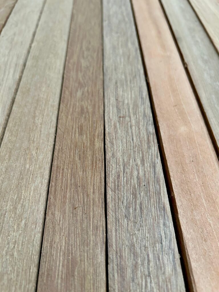 Permukaan potongan kayu bengkirai cenderung halus dengan kilau alami.